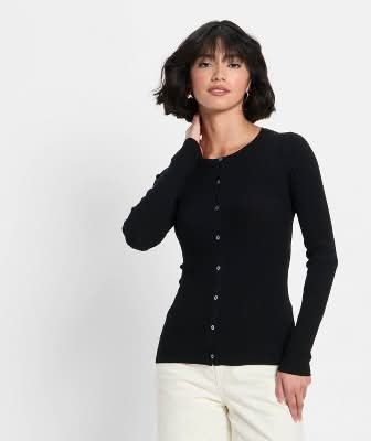 A New Day Button-Down Cardigan, L, Black