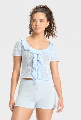 Wild Fable Ruffle Tie Cardigan, Women, M, Light Blue