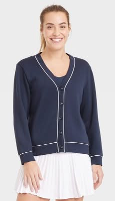 All In Motion Piped Button Up Cardigan, Women, L, Navy Blue