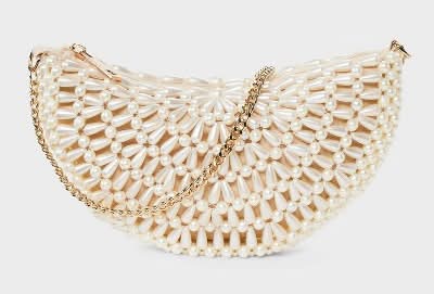 A New Day Pearl Beaded Half Moon Clutch Bag
