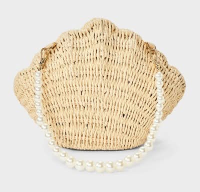A New Day Straw Clamshell Clutch Handbag, Light Beige
