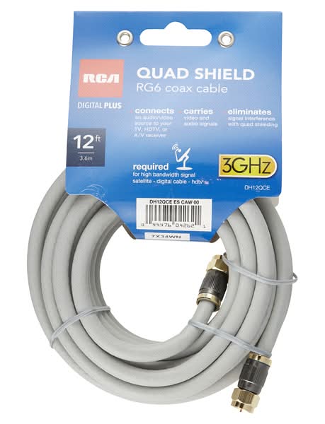 RCA Digital Plus Quad-Shield Rg6 Coax Cable, 6 ft