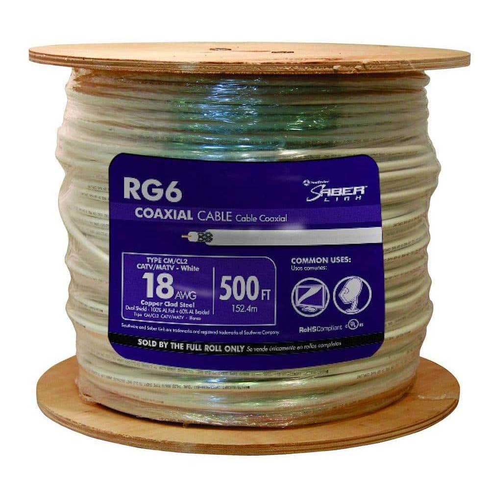 Southwire Dual Shields Type Rg 6 U 18 Awg Coaxial Cable, 500 ft, White