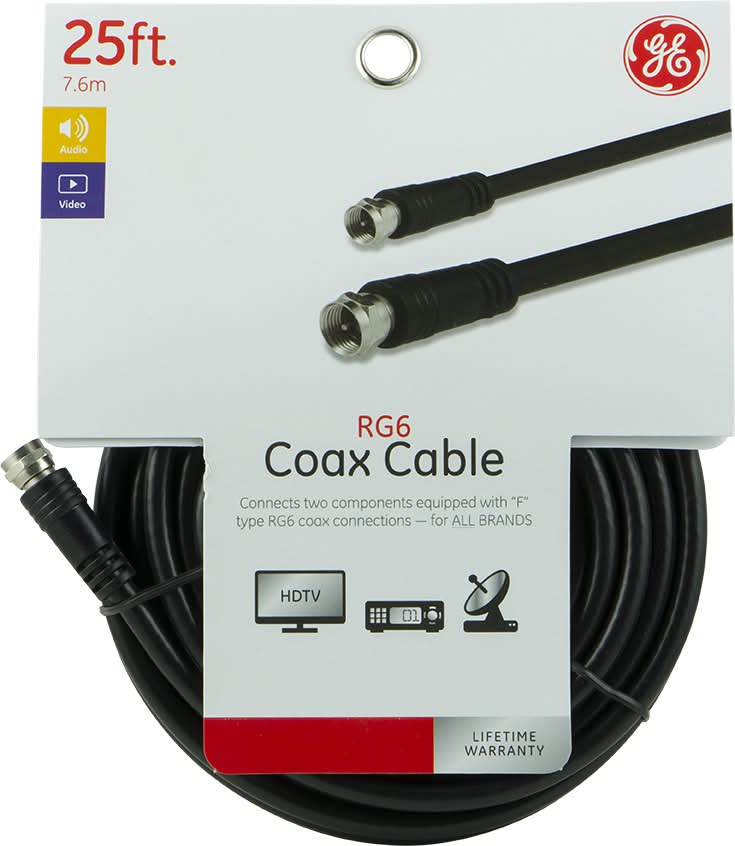 General Electric Rg6 Video Coax Cable, 25ft, Black