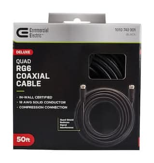 Commercial Electric 18-Gauge Rg6 Coaxial Cable, 50 Ft, Black