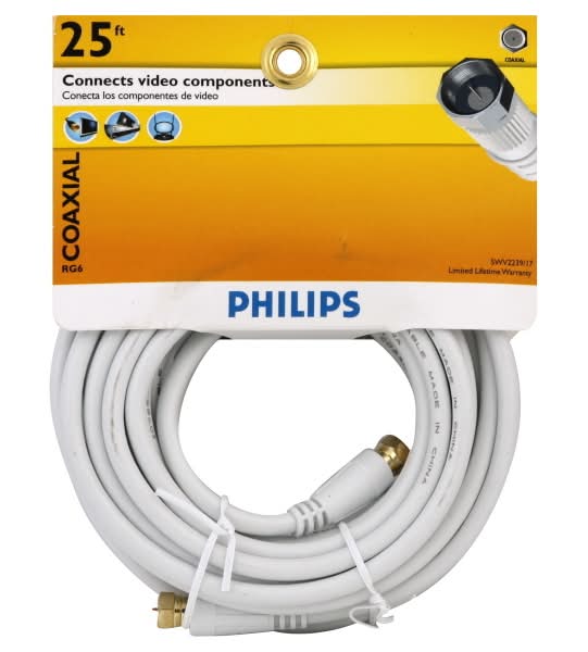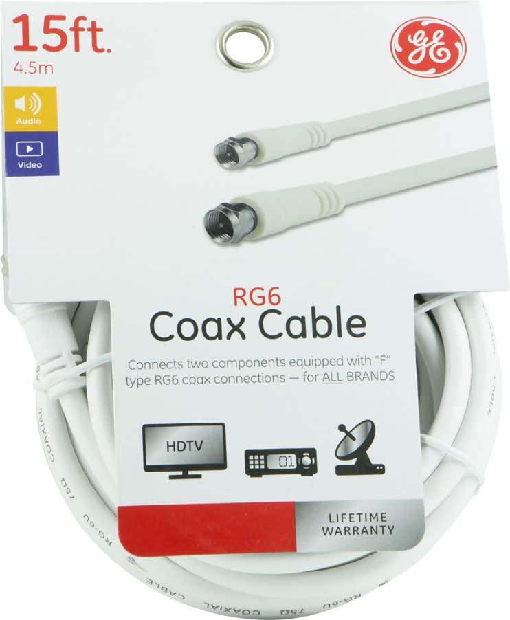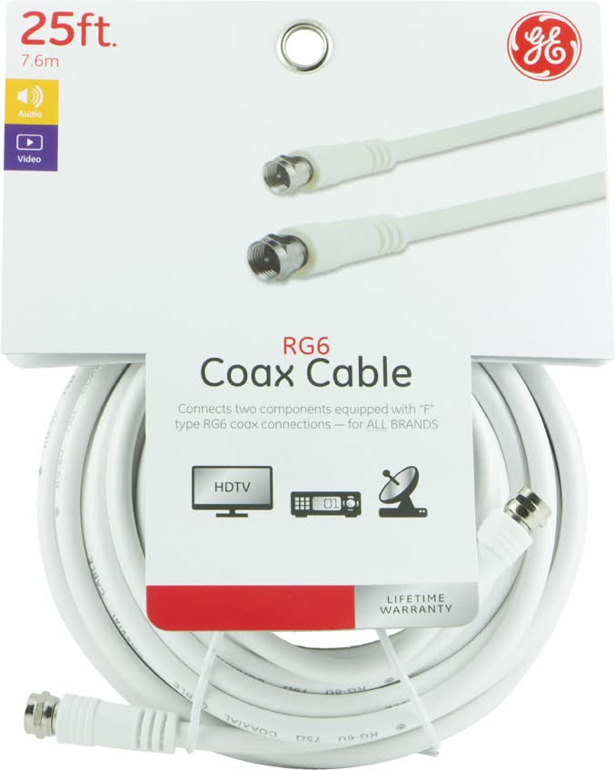 General Electric Rg6 Coaxial Cable, 25 Feet, White