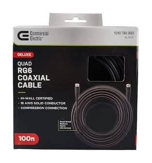 Commercial Electric Rg-6 Quad Shielded Coaxial Cable, 100 ft, Black