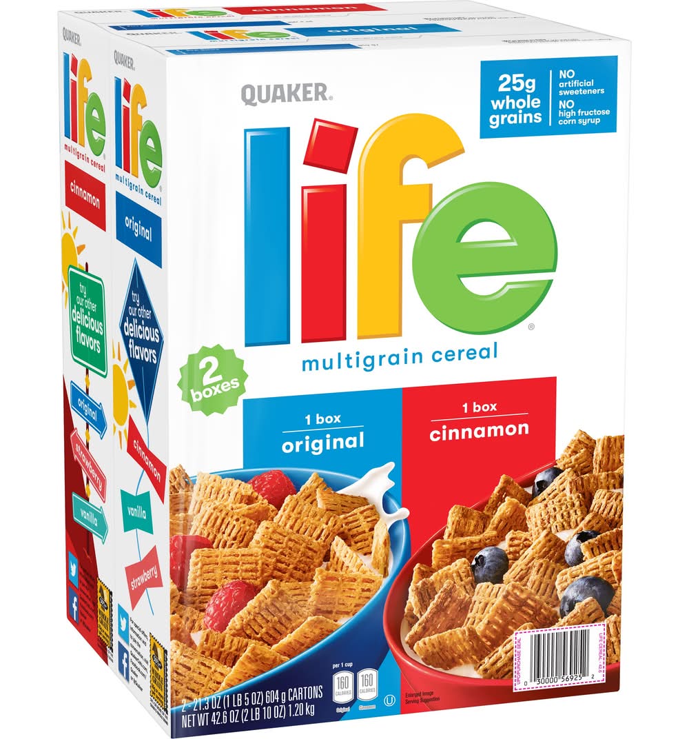 Quaker Life Multigrain Cereal Variety, Original-Cinnamon (21.3 oz, 2 ct)