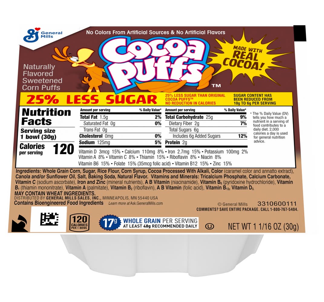 Cocoa Puffs 25% Less Sugar Breakfast Cereal Bowlpak (1.06 oz)