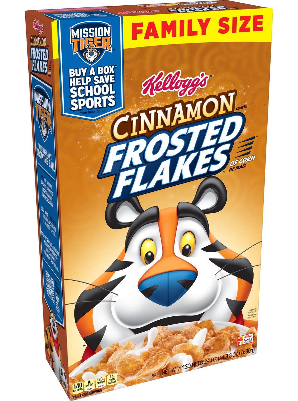 Frosted Flakes Kelloggs Family Size Cereal, Cinnamon (24 oz)
