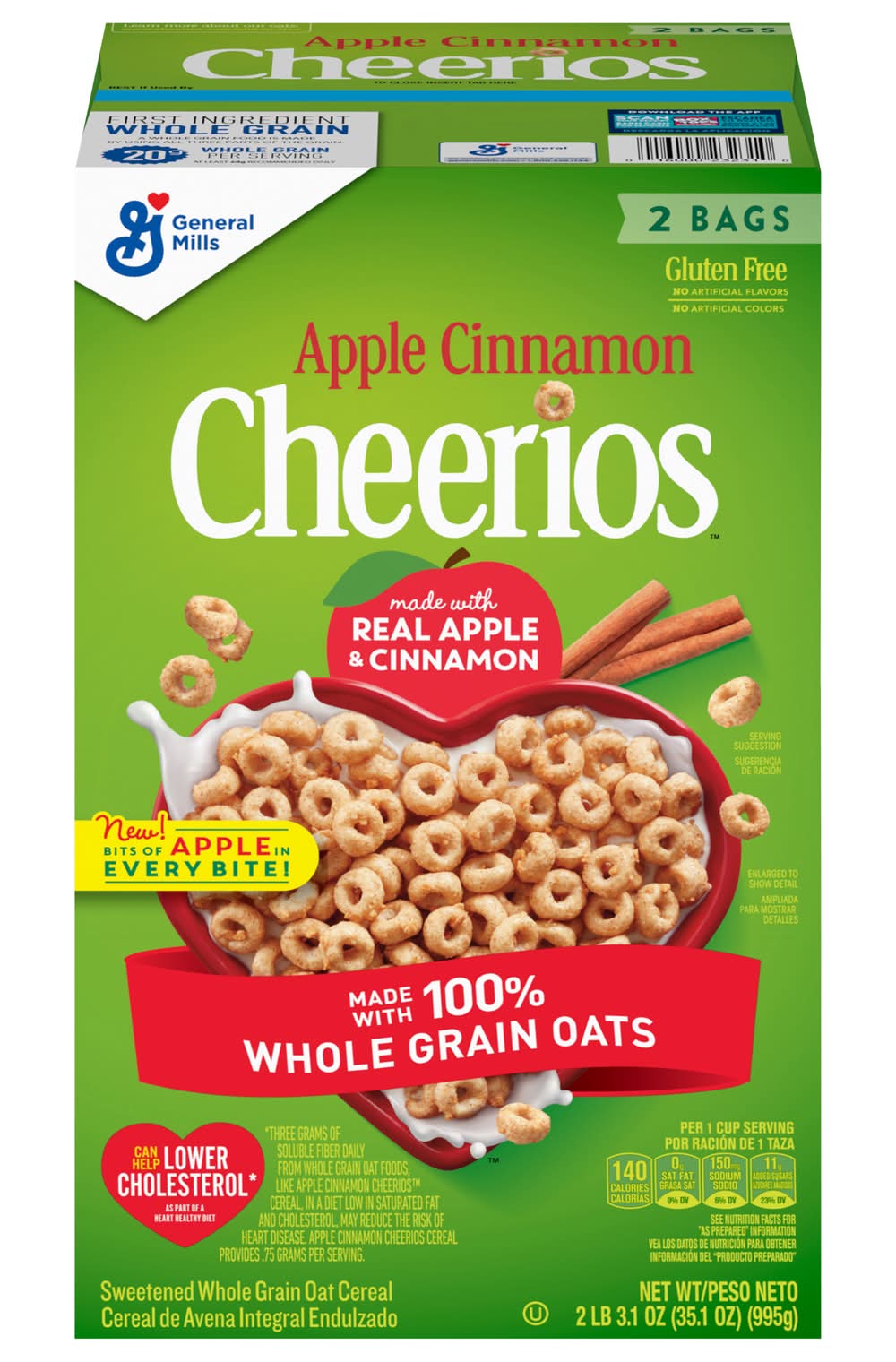 Cheerios Sweetened Whole Grain Oat Breakfast Cold Cereal, Apple-Cinnamon (35.1 oz, 2 ct)