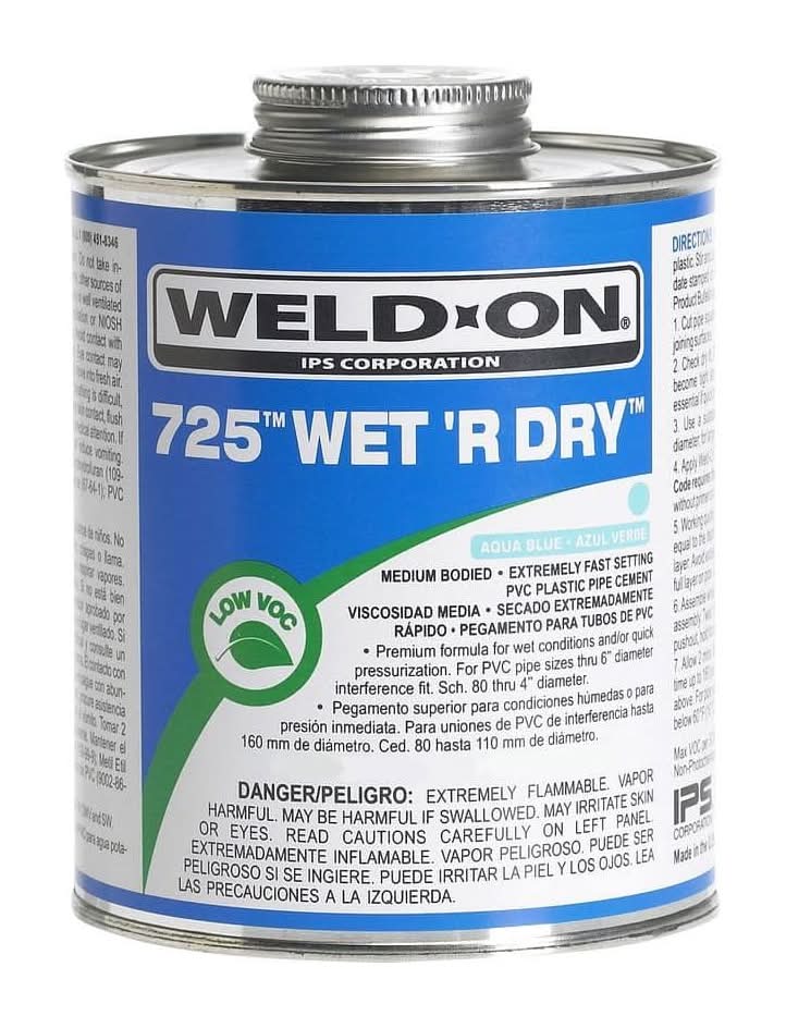 Weld-On 725 Wet R Dry Medium Body Pvc Cement, Aqua Blue