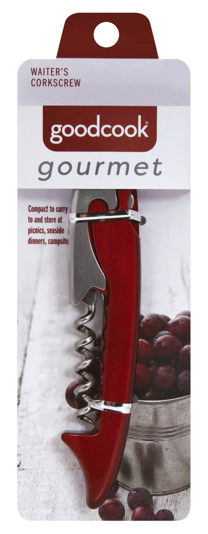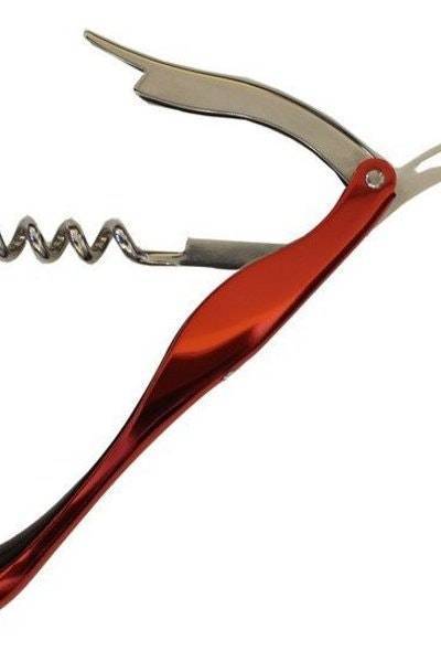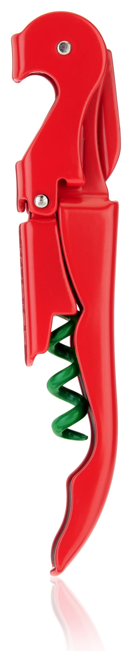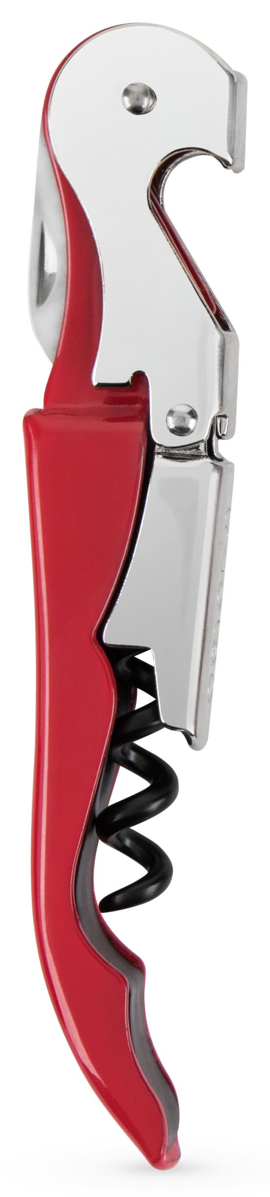 TRUE Double Hinged Waiters Corkscrew Bottle Opener With Foil Cutter, Red