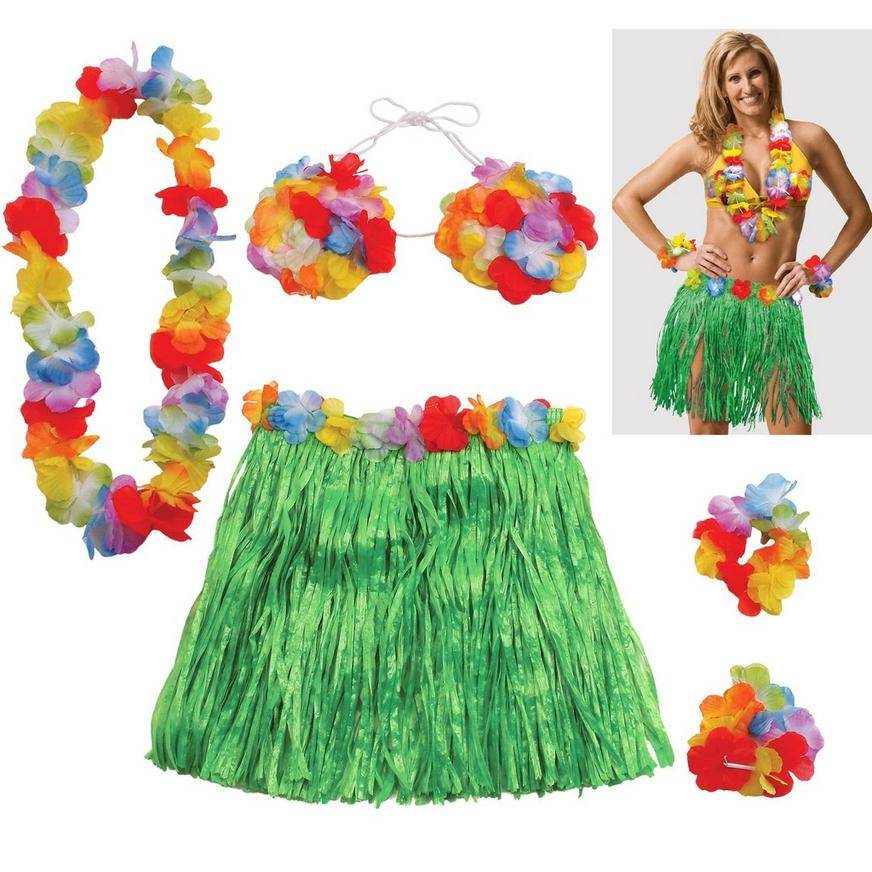 Party City Adult Large Faux Grass Skirt Kit, Women, Festive/Green-Red-Sky-Yellow (5 ct)