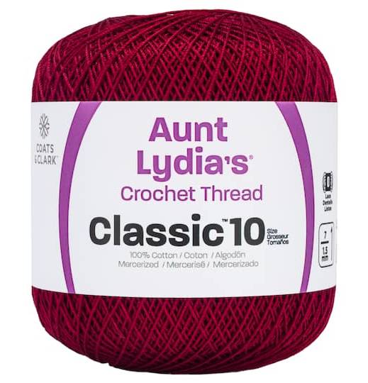 Aunt Lydia's Classic Cotton Crochet Thread, Size 10, Burgundy