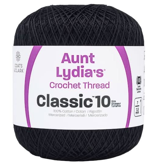 Aunt Lydia's Classic Cotton Crochet Thread, Size 10, Black