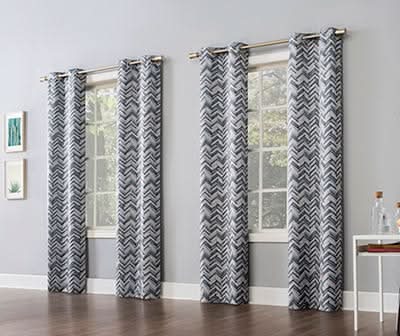 Sun Zero Brevick Geometric Faux Linen Blackout Grommet Curtain Panel, 40x63 in, Steel Gray