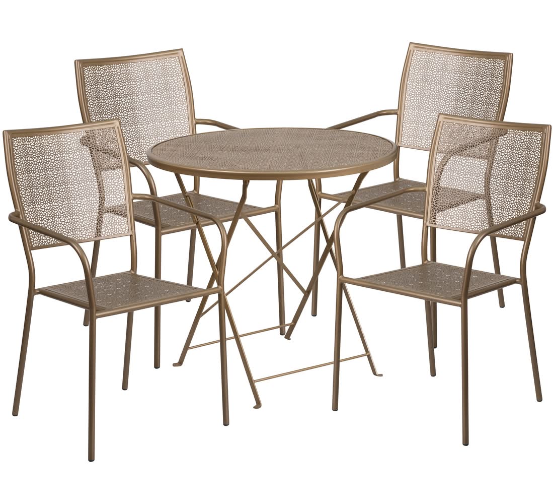 Flash Furniture Oia Commercial Round Steel Folding Patio Table Set With Square Chairs, 30 in, Gold (5 ct)