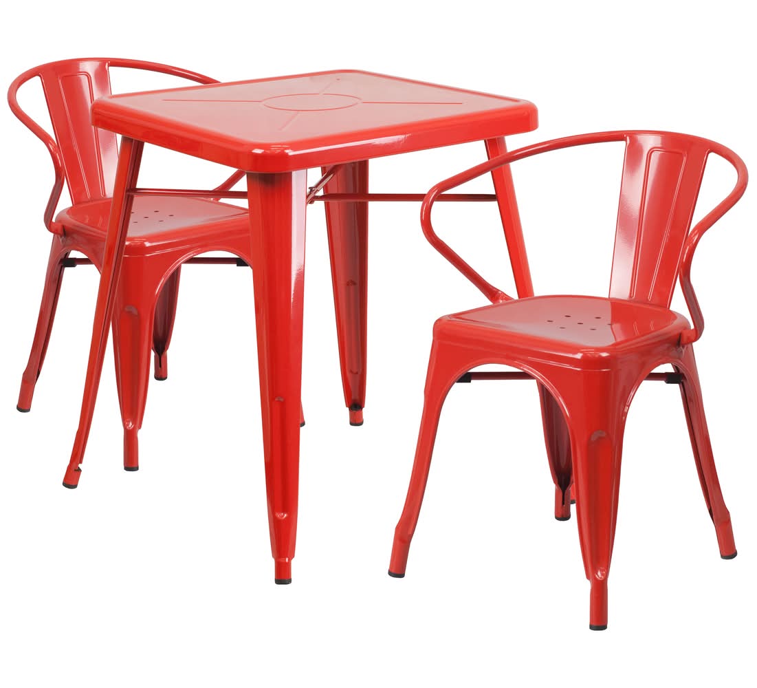 Flash Furniture Owen Commercial Grade Square Metal Indoor-Outdoor Table Set, 23.75 in, Red