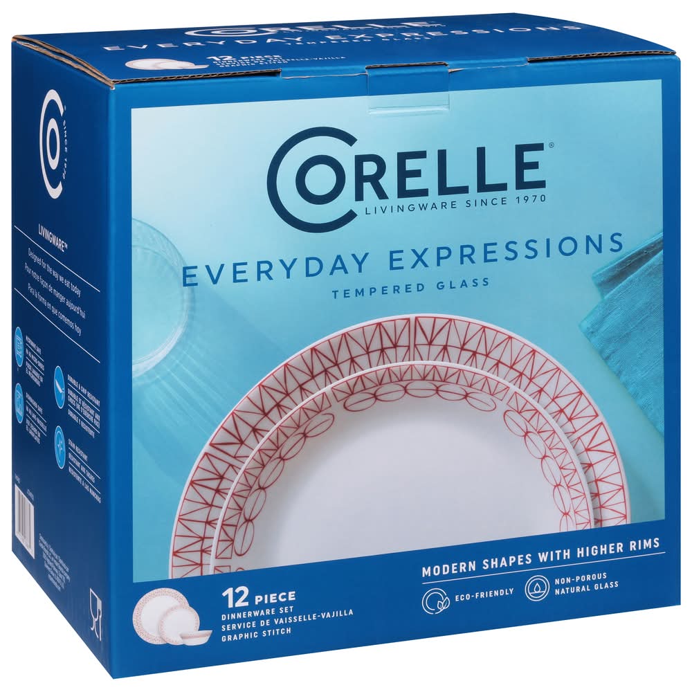Corelle 12 Piece Graphic Stitch Tempered Glass Dinnerware Set