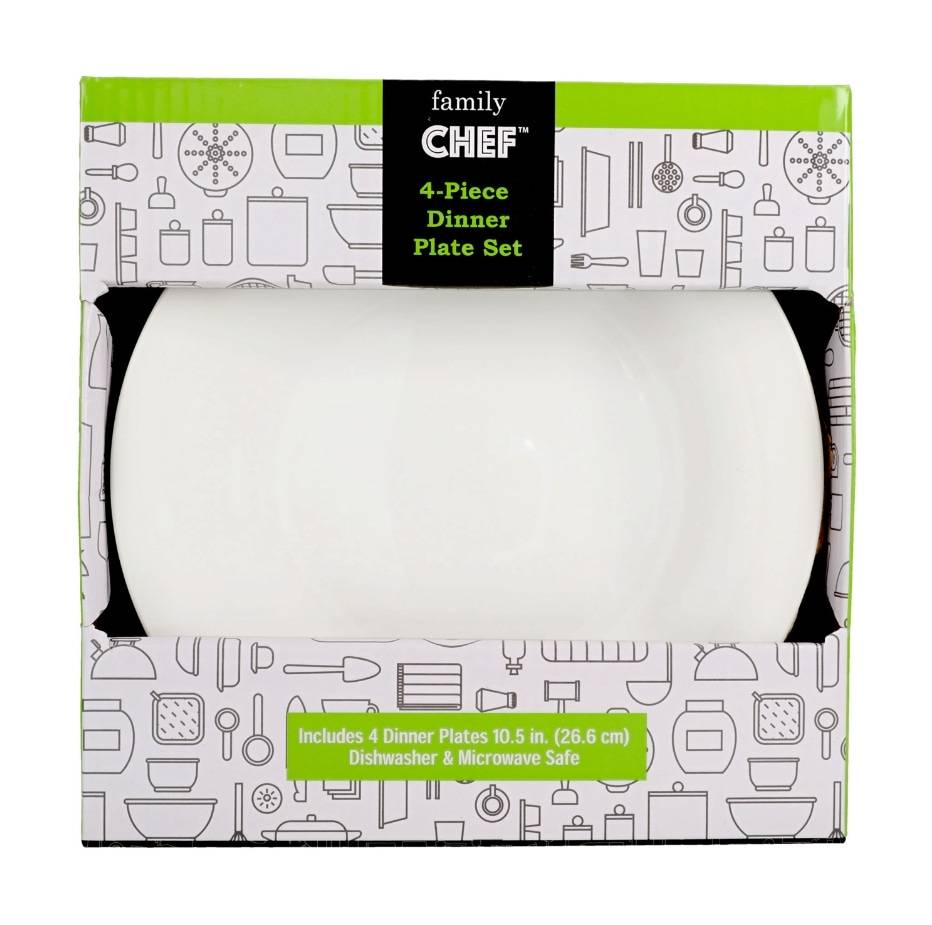 Family Chef Ceramic Dinner Plate Set, 10.5 in, White (4 ct)