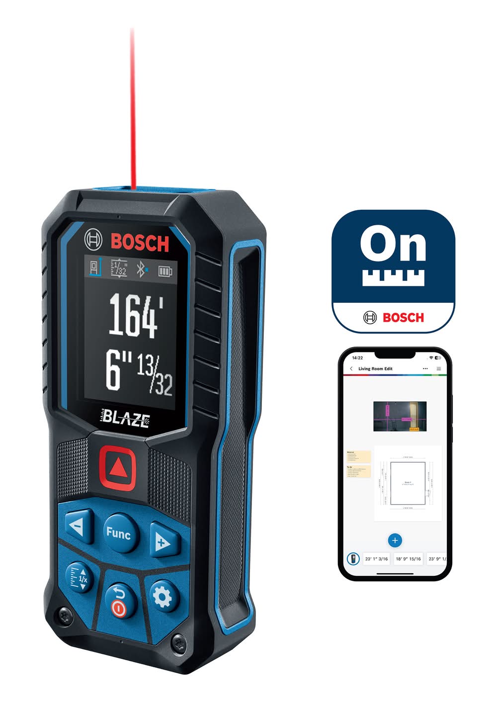 Bosch Blaze Green Laser Distance Tape Measuring Tool With Bluetooth, 165 ft (0.91 lbs)