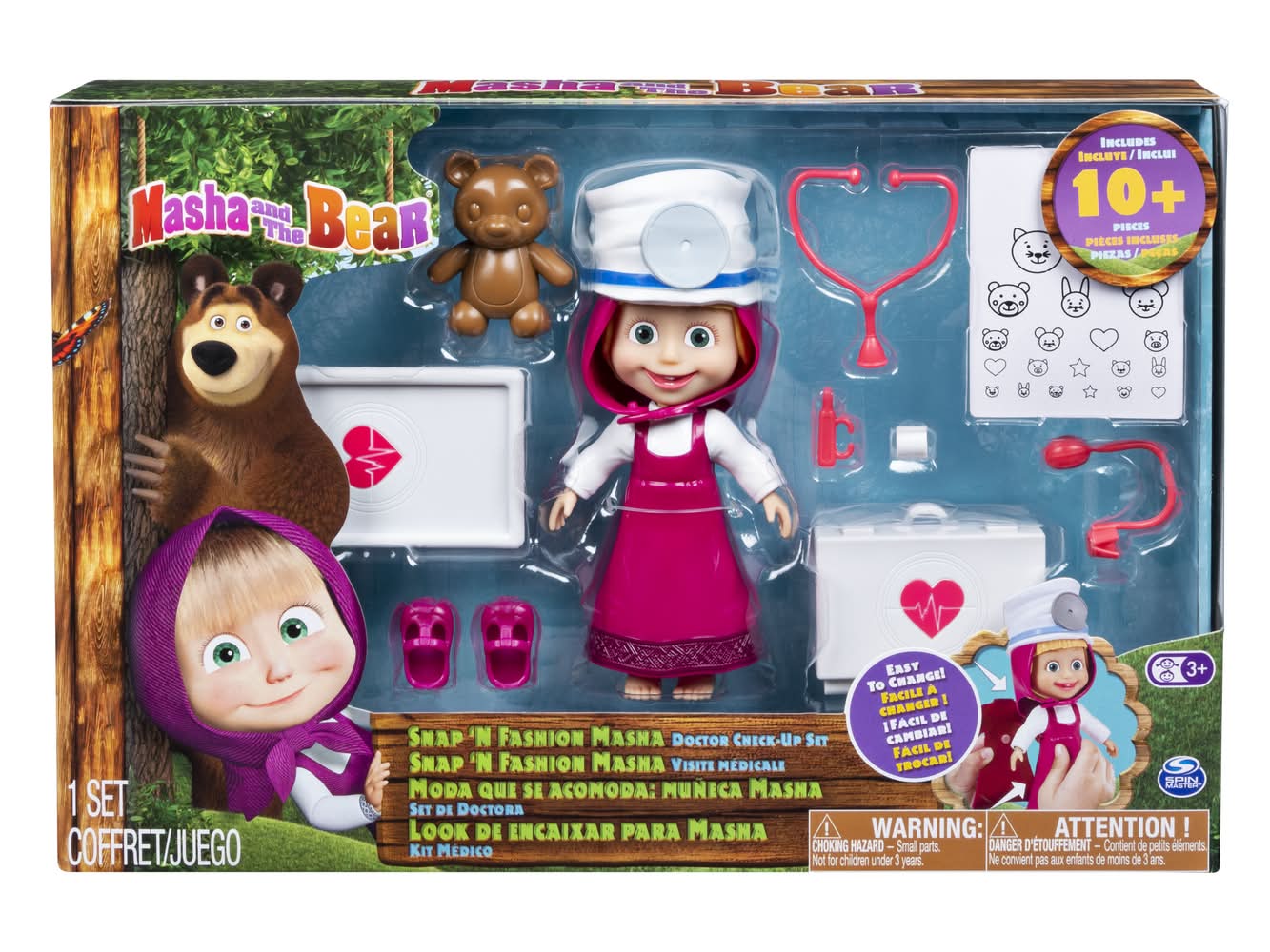 Spin Master Masha and the Bear Deluxe Snap ‘N Fashion Masha Dress-Up Doll Doctor Check-Up Set