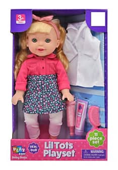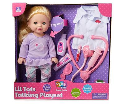 Play Zone Lil Tots Blonde Hair Blue Eyes Talking Doll Doctor Play Set, 14"