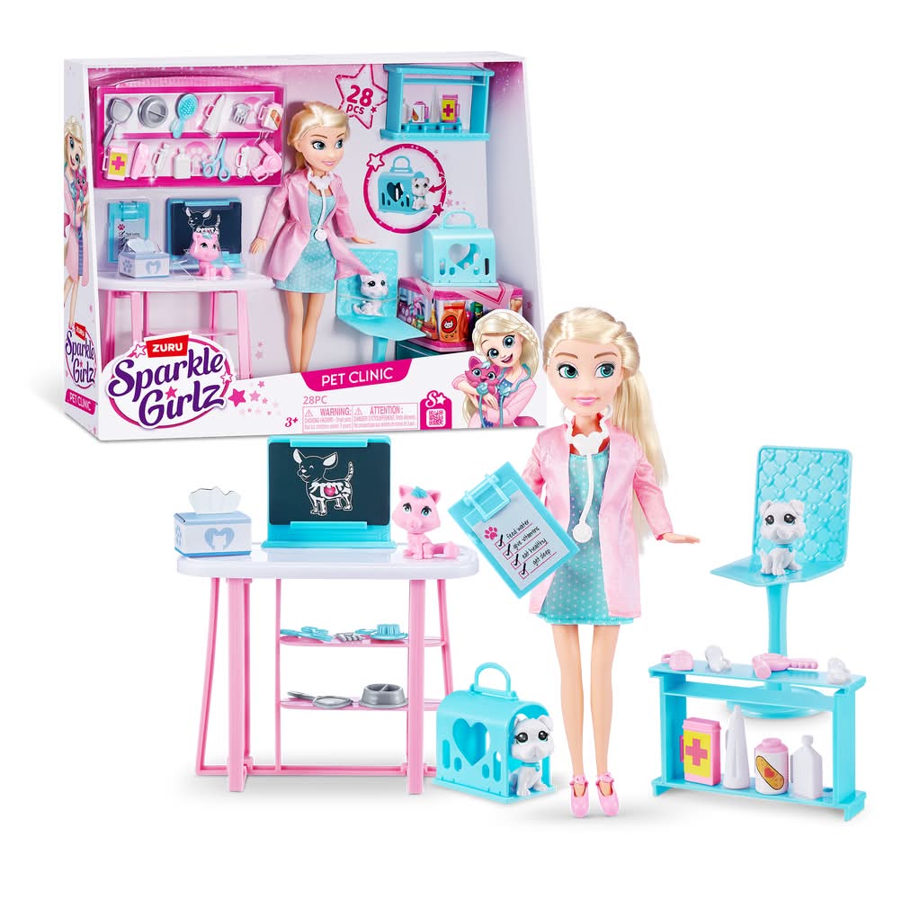ZURU Sparkle Girlz Veterinarian Pet Clinic Doll Set For 3+ Years (28 ct)
