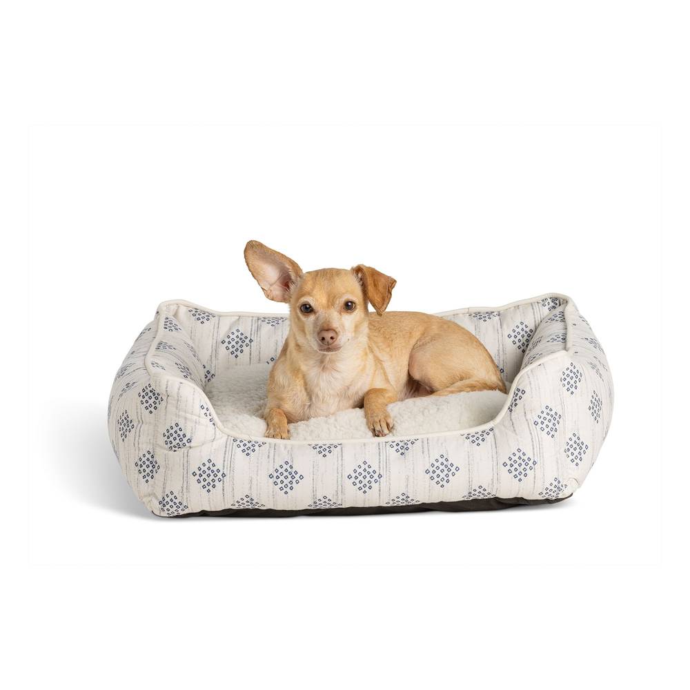 PetShop by Fringe Studio Ink Medallion Cream Rectangular Cuddler Pet Bed, Large, Blue