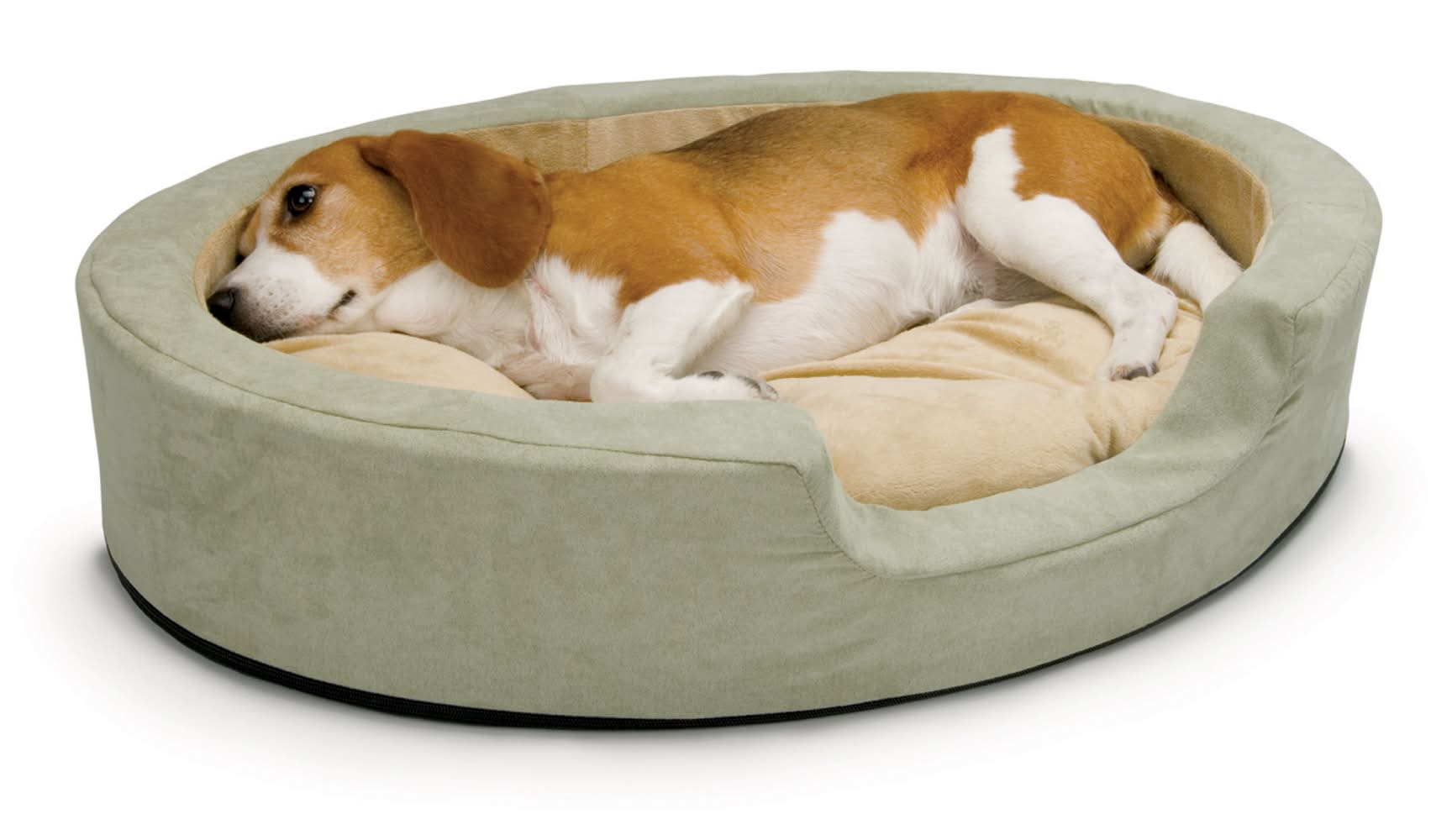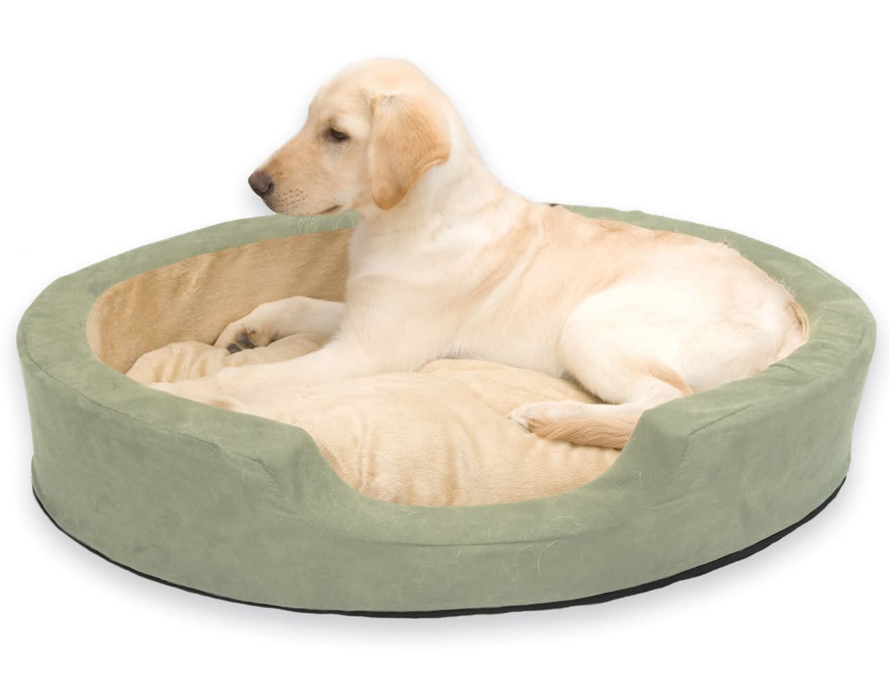K & H Pet Products Thermo Snuggly Heated Dog Bed, Medium 26 X 20 X 5.5 In, Sage/Tan