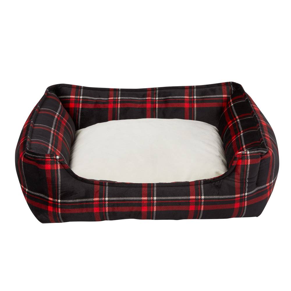 PET HOLIDAY Printed Flannel Rectangle Plush Dog Bed, Red - Black