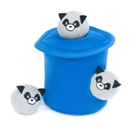 Zippy Paws Zippy Burrow Raccoons in Trash Can With Bubble Babiez Hide and Seek Puzzle Dog Toy