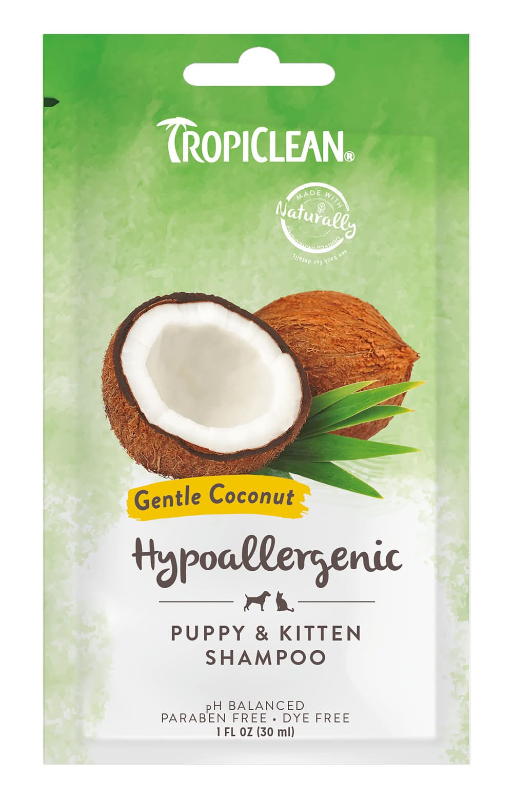 Tropiclean Hypoallergenic Puppy and Kitten Shampoo- Gentle Coconut (1 fl oz)