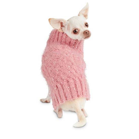Bond & Co. Fluffy and Flashy Pink Dog Sweater, Large