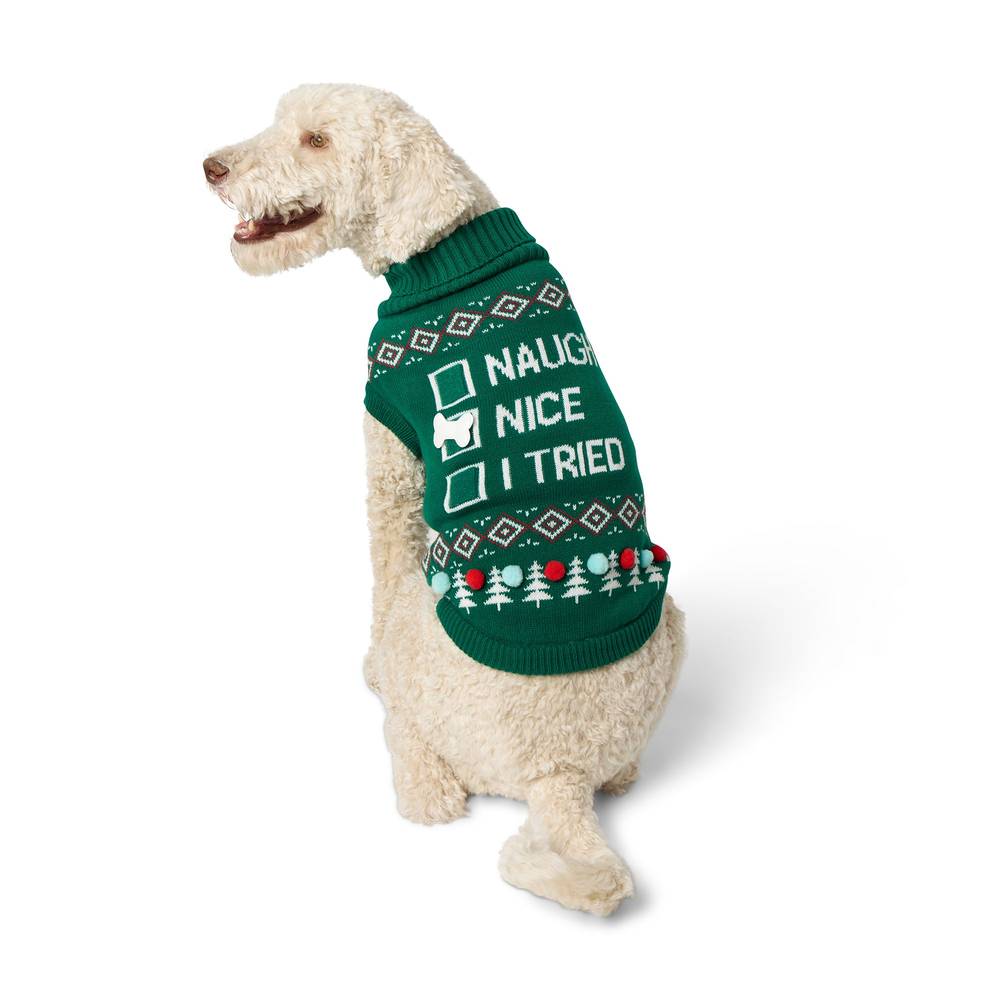 Merry & Bright I Tried Ugly Dog & Cat Sweater, Small, Green