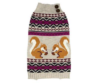 Simply Dog Pet Small Tan & Purple Squirrel Fair Isle Sweater, S, Tan