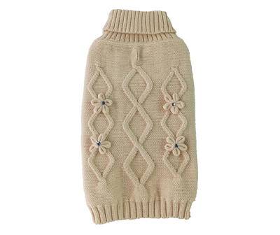 Big Lots Pet Jeweled Chunky Cable Knit Sweater, M, Tan