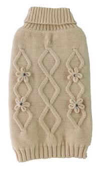 Pet Jeweled Chunky Cable Knit Sweater, Small, Tan