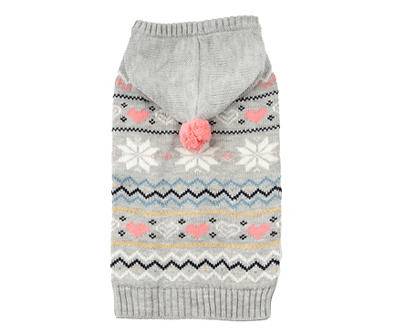 Simply Dog Pet Snowflake Fair Isle Hooded Sweater, S, Gray