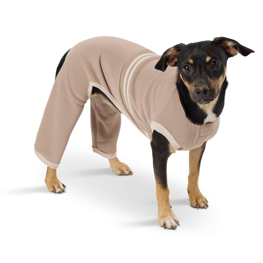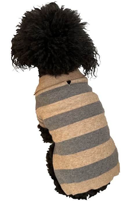 The Howls Mix Stripe Polo Dog Sweater, X-Large, Biscuit-Taupe