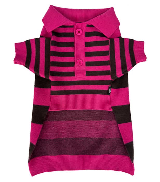 The Howls Mix Stripe Polo Dog Sweater, XX-Large, Pink-Brown (0.2 lbs)