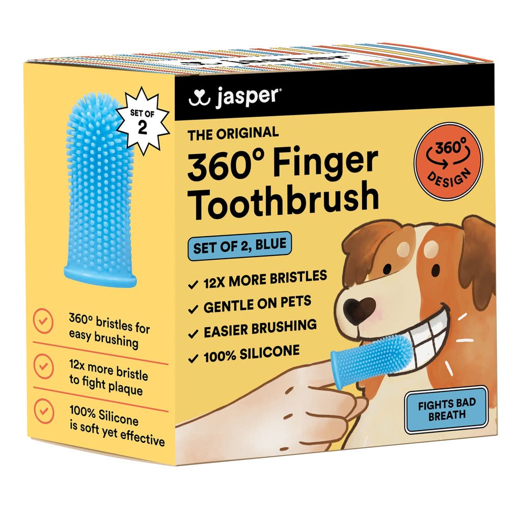 Jasper 360º Silicone Pet Finger Dog Toothbrush, Blue (2 ct)