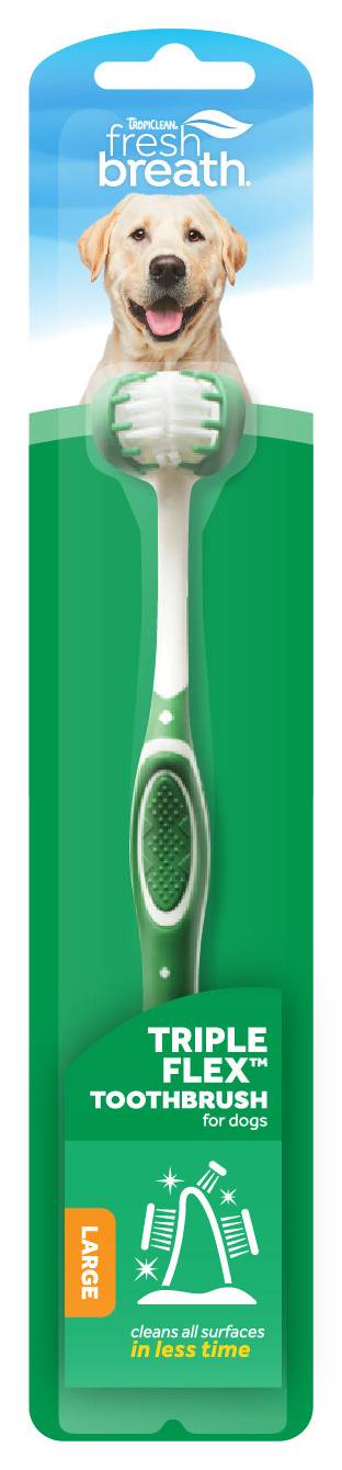 Tropiclean Fresh Breath Triple Flex Tooth Brush For Dogs, Large, Green-White