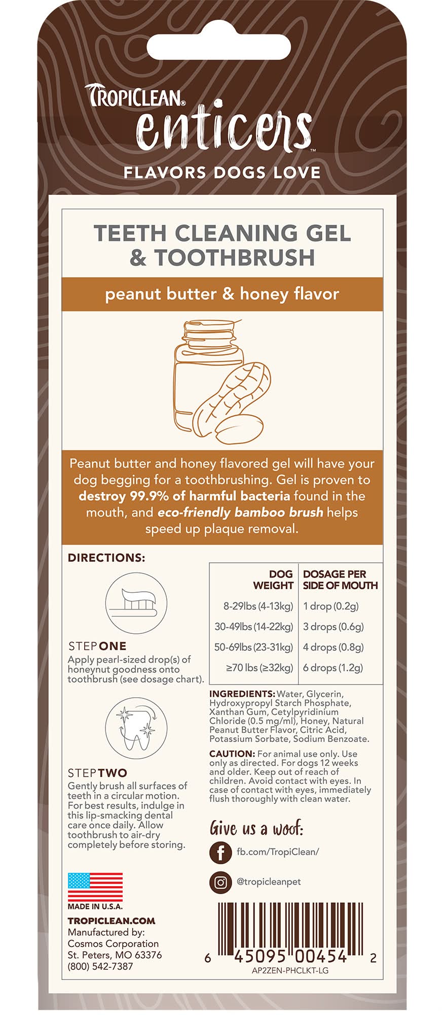 Tropiclean Teeth Cleaning Gel & Toothbrush For Large Dogs, Peanut Butter-Honey (2 fl oz)