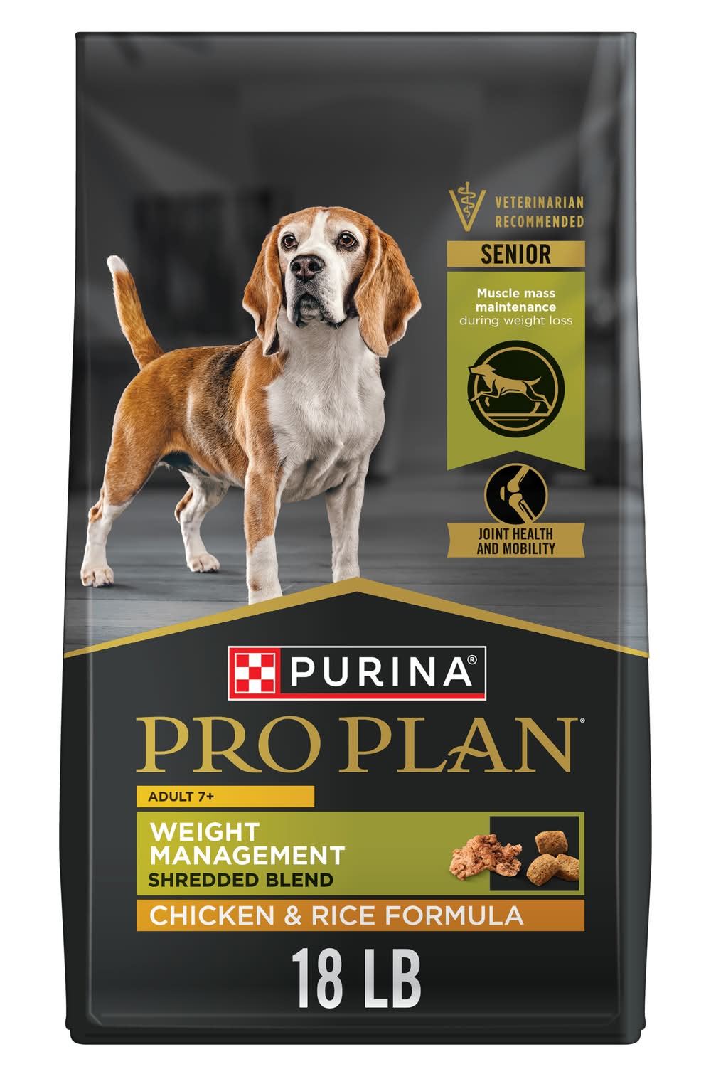 Purina Pro Plan Weight Management Shredded Blend Dry Dog Food, Chicken & Rice, Senior Adult 7+ (18 lbs)