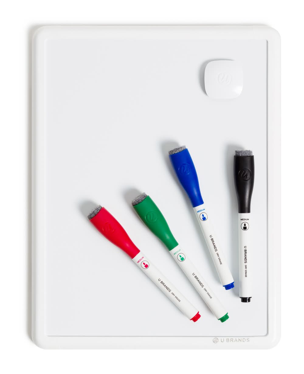 Les Produits U Dry Erase Kit, 3 Assorted Chisel Dry Erase Markers, Magnetic Eraser