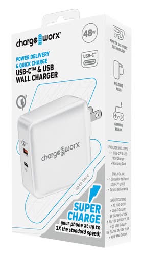 Chargeworx Usb-C & Usb Pd Wall Charger For Macbook, White