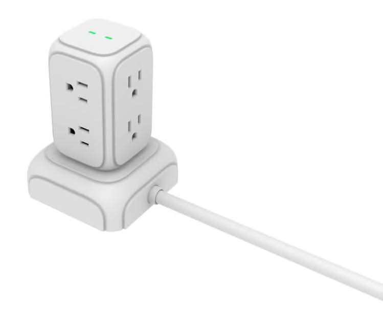 Commercial Electric Surge Protector Mini Tower With Usb Ports, 6 ft, White