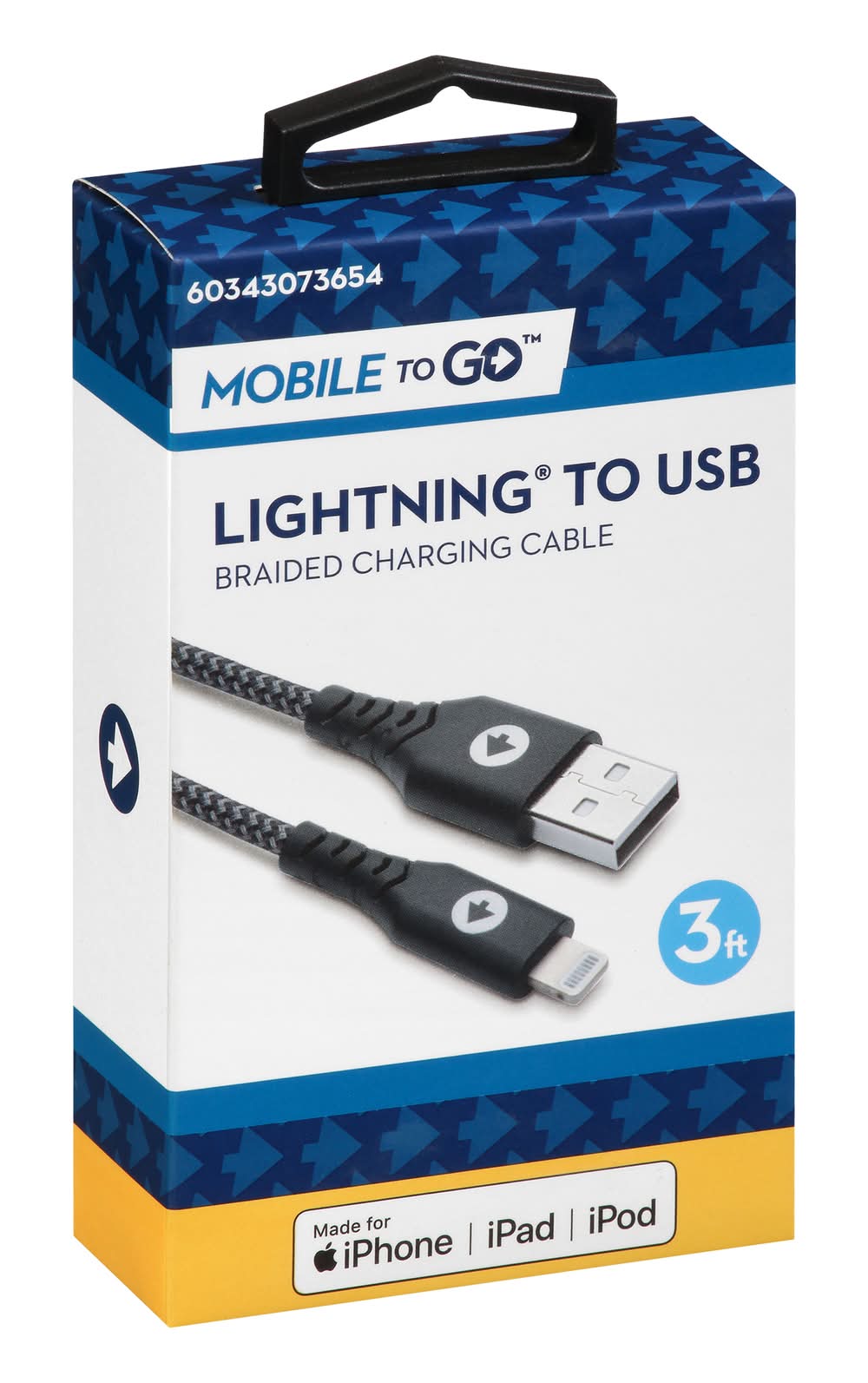 Mobile To Go Lightning To Usb Braided Charging Cable, 3 Feet